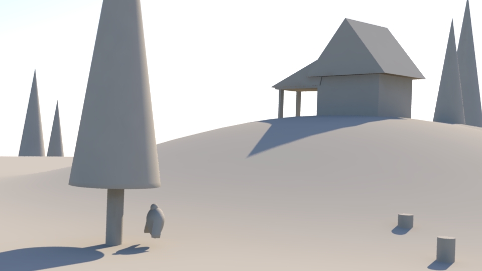 After some Maya tests to figure out how to try and model trees, we have decided that the leafy option did not fit with the concept art and feel of the animation, so a couple quick tests on a poly version of trees to see if they suited better. A little rough at the moment, but we felt much better for what we wanted and further development will be worked on this way.
